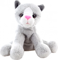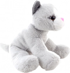 De pluchen kat in een prachtige grijze uitvoering met een schattig wit gezichtje en roze neusje zal elk kind verheugen.