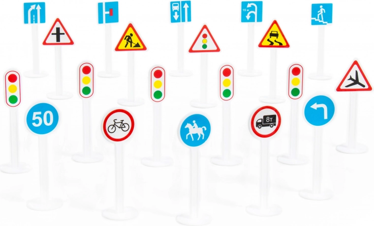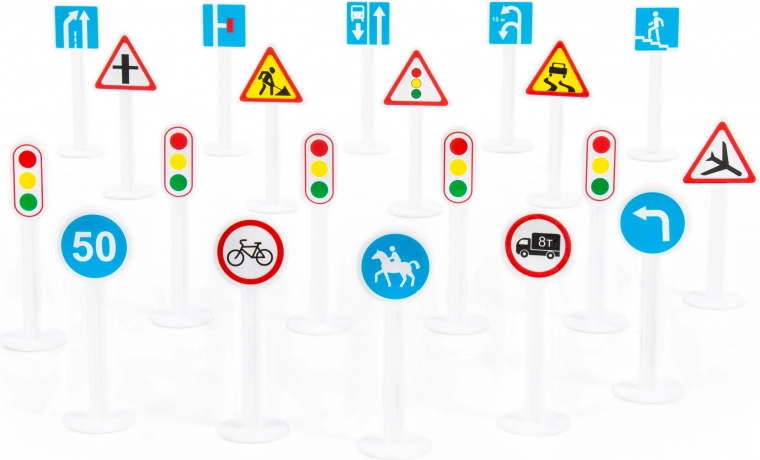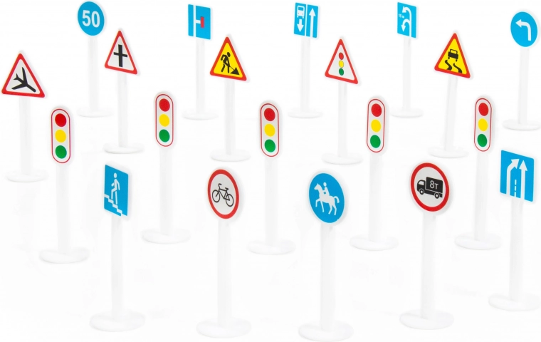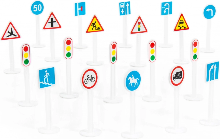 - Realistische uitvoering – De set bestaat uit plastic borden die echte verkeersborden natuurgetrouw nabootsen.