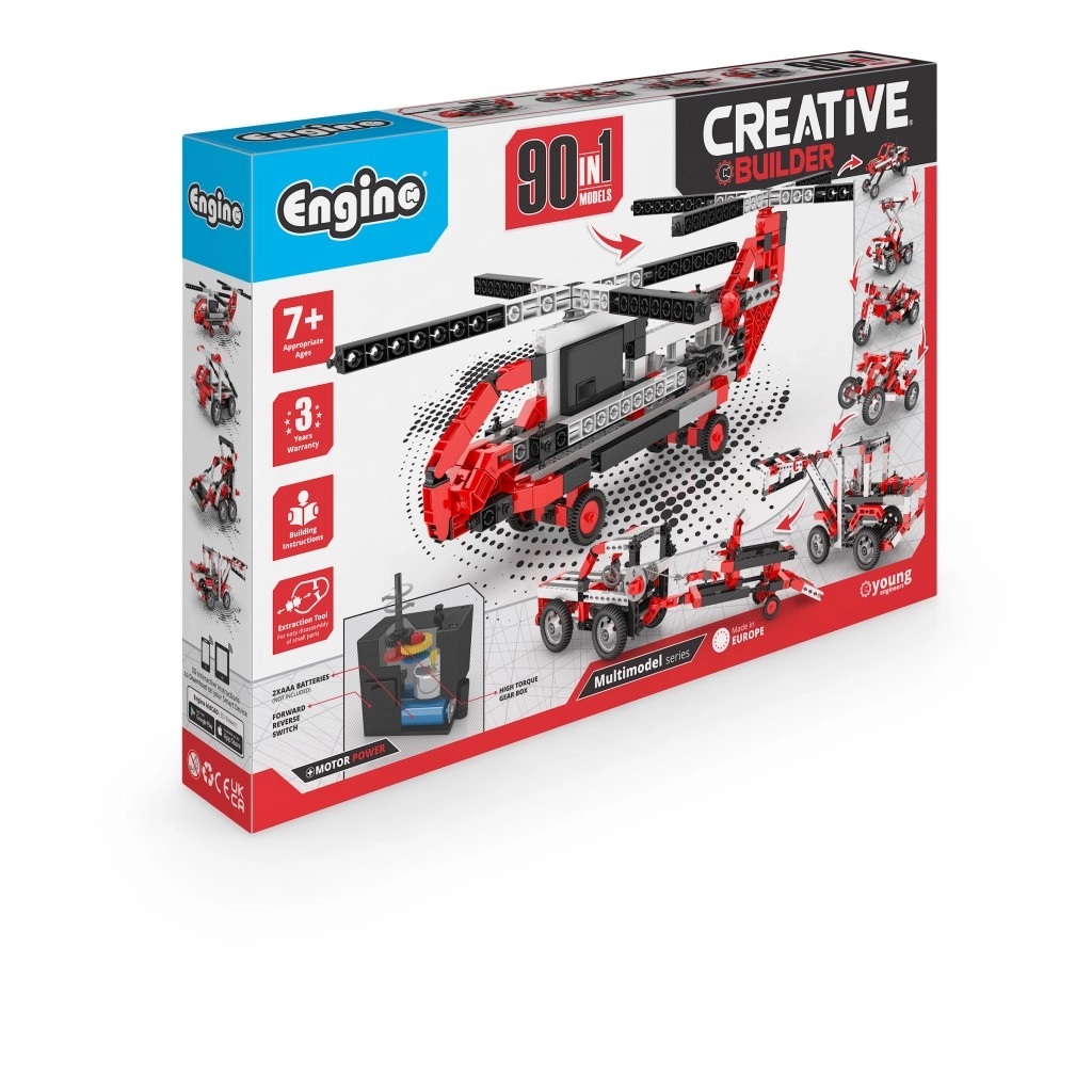 Ontdek eindeloze bouwmogelijkheden met de ENGINO Creative Builder 90-in-1 met motortje voor aandrijving van modellen. Met één set bouw je tot wel 90 verschillende modellen, van auto’s en motoren tot vliegtuigen en helikopters. Dankzij de interactieve app kidCAD 3D kun je modellen draaien, inzoomen en stap voor stap leren. Geschikt vanaf 7 jaar, compatibel met andere ENGINO-bouwsets.