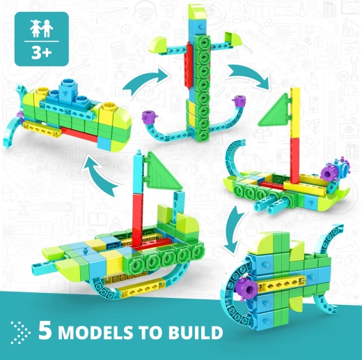 Met deze EnGino-bouwset kun je de onderwaterwereld verkennen via 5 verschillende modellen en activiteiten die de verbeeldingskracht van kinderen stimuleren en hun kennis vergroten.