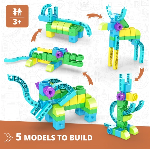 - Bouwen van 5 modellen: Ontwikkelt creativiteit en bouwvaardigheden.