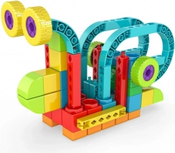 Robuuste, kleurrijke onderdelen verbinden met een snap-click systeem. Kinderen trainen veilig en zelfstandig hun fijne motoriek en coördinatie.