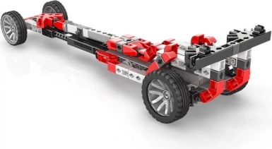 De geïntegreerde motor met versnellingsbak laat je richting en snelheid veranderen. Kinderen ervaren in de praktijk mechanica en het functioneren van overbrengingen.