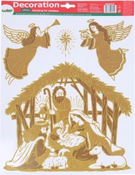 Stijlvolle raamdecoratie met het motief van een kerststal in het formaat 41 × 29 cm verandert je ramen in een betoverend kersts tafereel. Ideaal voor een snelle en eenvoudige decoratie van huis en kantoor, verkrijgbaar in 2 varianten.