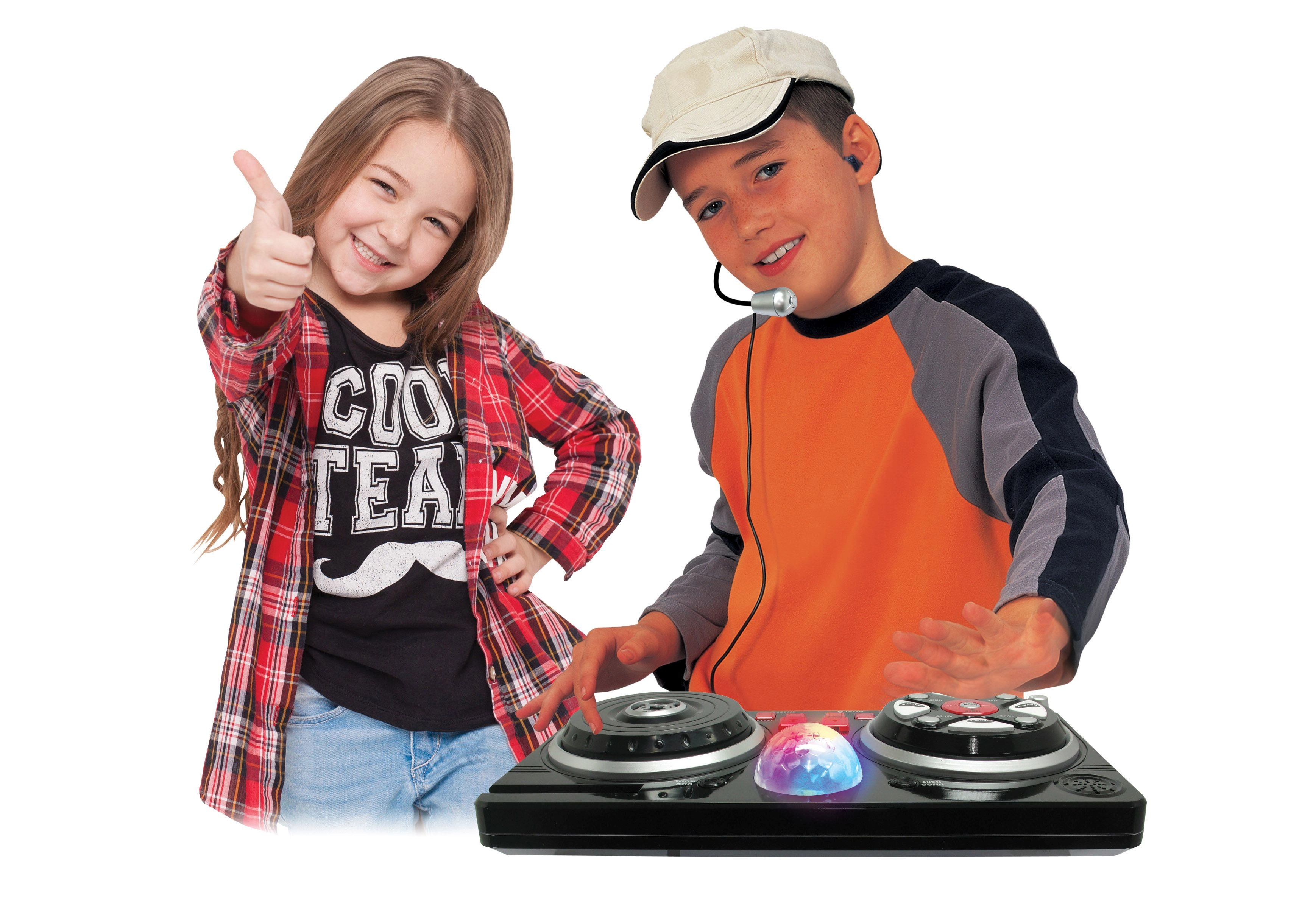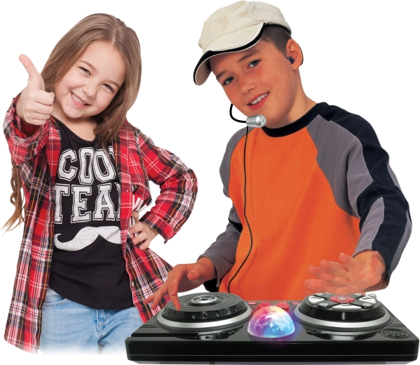 Tover de kinderkamer om tot een kleine opnamestudio. Dit mengpaneel met comfortabele hoofdmicrofoon en lichtgevende discobal biedt een brede reeks functies voor creatief spel en de eerste muzikale experimenten. Dankzij de aansluiting voor telefoon of mp3-speler kun je favoriete nummers eenvoudig afspelen en mixen met beats en effecten.
