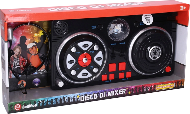Een leuk mengpaneel voor kinderen met hoofdmicrofoon en een lichtgevende discobal zorgt voor een geweldige thuisparty. Het biedt licht- en geluidseffecten, tot 6 disco-effecten, 16 effecten, 12 ritmes en 12 drumgeluiden. Inclusief instelbaar tempo en volume, houder voor mobiel/mp3 en automatische uitschakeling om energie te besparen. Batterijen 4× AA zijn inbegrepen in de verpakking.