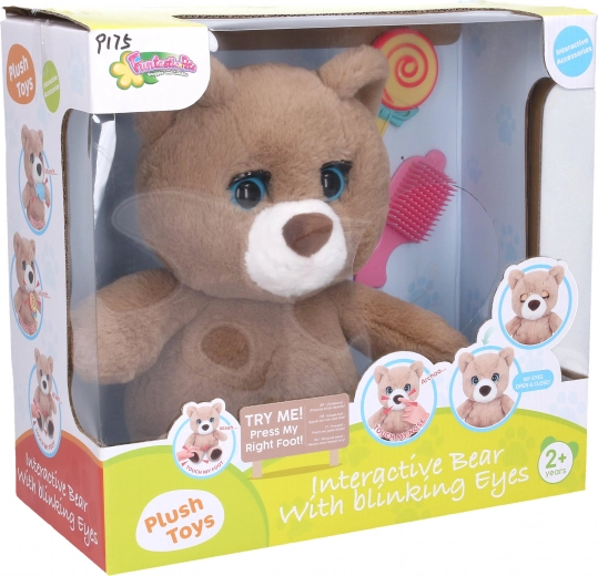 Maak kennis met deze schattige interactieve beer die niet alleen vermaak brengt, maar ook educatieve elementen toevoegt aan de kinderwereld. De beer is 27 cm hoog in zittende positie en is uitgerust met geluidseffecten en beweegbare lichaamsdelen. Activeer de interacties eenvoudig door in de linkerhand te knijpen of door accessoires, zoals het lollytje of het visje, bij de snuit te houden.