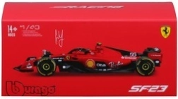 Ontdek het gedetailleerd uitgewerkte model FERRARI F1 SF-23 uit 2023 van het merk BBURAGO. De metalen carrosserie met kunststof accenten biedt realistische verhoudingen, de authentieke teamkleuren van Scuderia Ferrari en het startnummer 55 van Carlos Sainz. Ideaal voor in de vitrinekast, op het bureau of als cadeau voor liefhebbers van de koningsklasse van de autosport.