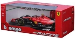 Officieel gelicentieerd metalen Bburago-model op schaal 1:18 dat de Scuderia Ferrari SF-23 (2023) met startnummer 55 natuurgetrouw weergeeft. Inclusief figuur van Carlos Sainz, authentieke teamkleuren en verfijnde details – ideaal voor verzamelaars en fans van de Formule 1.
