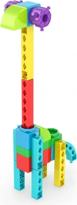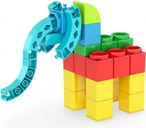 Bouw dieren, machines en voertuigen met grote, kleurrijke en eenvoudig te koppelen onderdelen. De variatie stimuleert verbeelding en fijne motoriek.