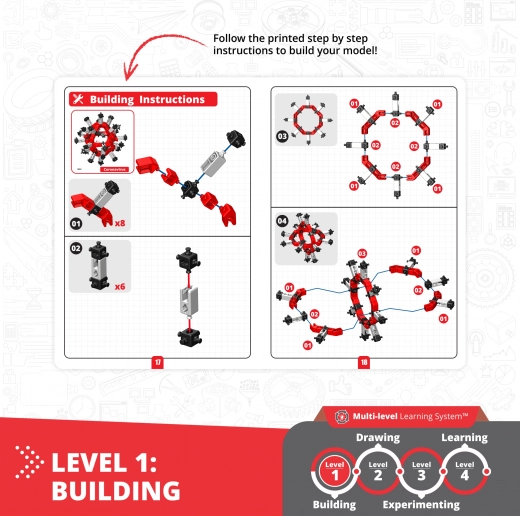 Ontdek een leuke weg naar de wetenschap met de Engino-bouwset Hoe virussen werken. Kinderen bouwen tot twee modellen en doorlopen vier leerniveaus – van bouwen via creëren tot experimenteren. Inclusief de app Engino kidCAD met 3D-modellen voor een intuïtieve aanpak. Een geweldige keuze voor de ontwikkeling van logisch denken, creativiteit en basiskennis biologie.