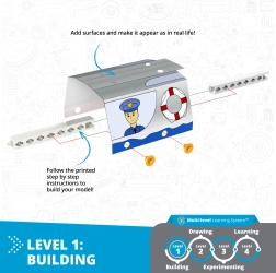 Ontdek hoe opwaartse kracht werkt en de principes van de natuurkunde met de creatieve ENGINO-bouwset. Kinderen kunnen tot 4 modellen bouwen en dankzij meerstaps leren combineren ze constructie, creatie en experimenten. 4 modellen in één, spelenderwijs natuurkunde leren, de Engino kidCAD-app met 3D-modellen en oplopende leerniveaus ondersteunen het leuke ontdekken van wetenschap.