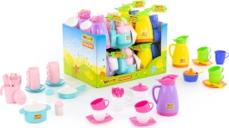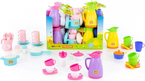 Schattig kinderservies dat alle kleine koks en kokkinnen zal verrassen. De sets bevatten een theepot, kopjes, schoteltjes, lepeltjes en andere accessoires voor realistisch koken en theekransjes. Dankzij het lichte plastic is het servies veilig en ligt het prettig in de hand. Kies uit meerdere varianten en stimuleer de kinderfantasie, sociale vaardigheden en creatief spel. Licht en veilig, veelkleurige uitvoering, verschillende combinaties van onderdelen, ideaal voor thuis en in de kleuterklas.