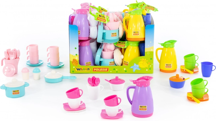 Dit kinderservies is een ideale keuze voor de eerste kook- en theemomenten. De kleurrijke sets bieden een gevarieerde mix aan accessoires – van theepot met schoteltjes tot een koekenpan of pan met deksel. De onderdelen zijn van licht plastic, voelen prettig aan en zijn eenvoudig te onderhouden.