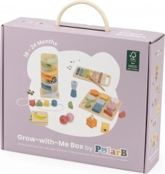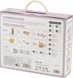Het veilige houten ontwerp met gladde randen en pastelkleuren nodigt uit tot ontdekken, traint geduld, concentratie en logisch denken. De set is perfect als cadeau en als start in de wereld van zinvolle, door Montessori geïnspireerde activiteiten.