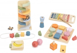 Deze zorgvuldig samengestelde VIGA-set voor de leeftijd 18–24 maanden combineert favoriete houten speelgoeditems tot een harmonieus geheel. De set bevat een xylofoon voor de eerste muzikale experimenten, een leuke autobaantoren, een vormpuzzel, schroefdelen, rijgvormen en een houten boekje met fruitafbeeldingen. Elk onderdeel is ontworpen om de natuurlijke ontwikkeling van het kind spelenderwijs te ondersteunen.