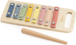 De pastelgekleurde houten xylofoon laat kinderen kennismaken met de wereld van tonen, ontwikkelt het gehoor en ritme en ondersteunt de oog-handcoördinatie bij het slaan met het stokje.