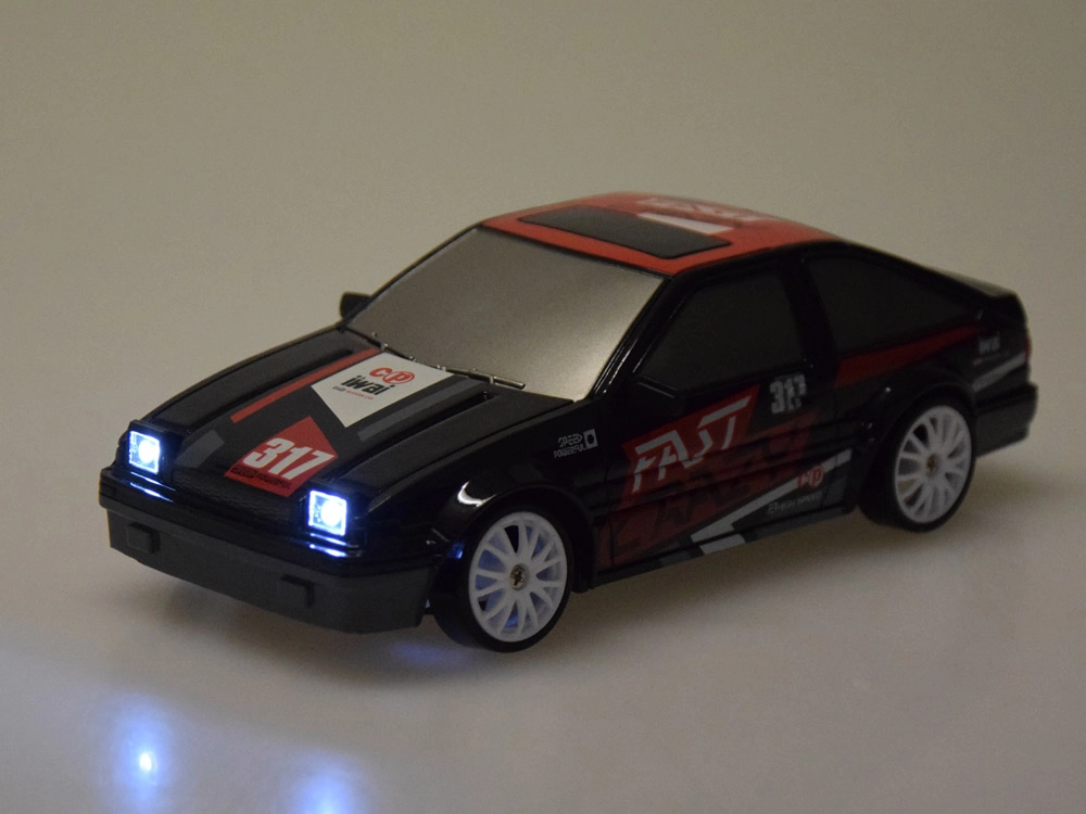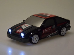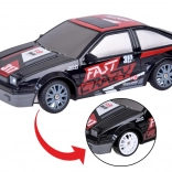 De stijlvolle RC-raceauto is ontworpen voor snelle ritten en drift. Realistische proporties in schaal 1:24 en een lichte constructie zorgen voor vlotte reacties en uitstekende wendbaarheid. De 2,4 GHz zender minimaliseert storingen en maakt vloeiende bediening mogelijk: vooruit/achteruit en sturen naar rechts/links.