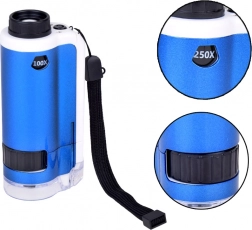 Met deze draagbare microscoop kun je eenvoudig bladeren, insectenvleugels, uienschillen, pixels van een scherm en nog veel meer onderzoeken – alleen je verbeelding is de grens. Eenvoudig scherpstellen en de geïntegreerde LED-verlichting zorgen voor een helder en scherp beeld, ook bij hogere vergroting.