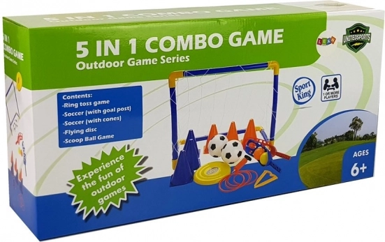 Set van 5-in-1 buitenspellen – voetbaldoel, FRISBEE en vangmandjes
