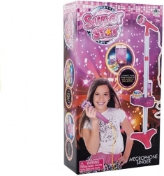 Start thuisconcerten met deze roze set voor kleine zangeressen en zangers. Biedt een interactief paneel met luidspreker, disco-projector met gekleurde lichtjes, 10 muziektracks, knoppen voor applaus en publiekseffecten en MP3/telefoonaansluiting om mee te zingen met favoriete liedjes. De in hoogte verstelbare standaard groeit met het kind mee en stimuleert muzikale ontwikkeling, ritme en coördinatie.