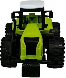 De groene tractor met wit dak en grote wielen kan elke “veld”-taak aan. De perfecte basis om andere hulpstukken aan te koppelen.