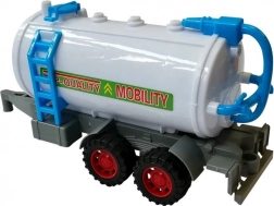 De witte tank met blauwe details en draaibare wielen breidt speelscenario’s uit met irrigatie en watertransport op de boerderij.