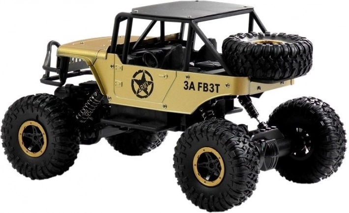 Gouden RC-auto Jeep 1:18 met 4x4-aandrijving, vering en Twist-functie. Oplaadbare accu’s, 2,4 GHz-controller. Geweldig plezier voor kinderen vanaf 3 jaar.