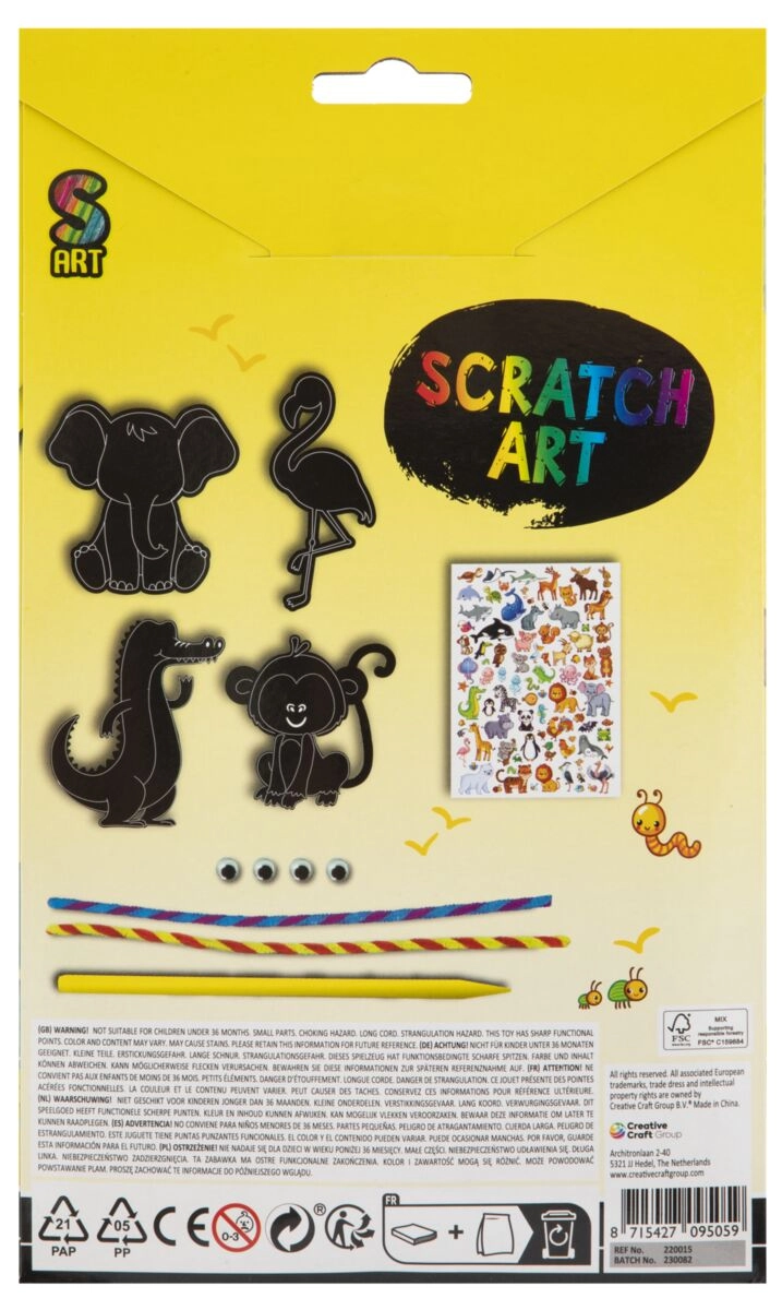 Creatieve set waarmee kinderen hun eigen krasdieren kunnen maken. De set is een uitstekende manier om de creativiteit van kinderen te stimuleren en tegelijkertijd voor plezier te zorgen.