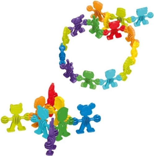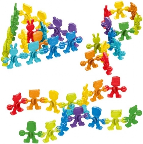 De figuren kunnen met elkaar worden verbonden, zodat kinderen cirkels, kettingen en eenvoudige constructies kunnen maken – een leuke manier om motoriek en creativiteit te ontwikkelen.