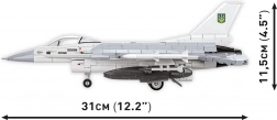De F-16 Fighting Falcon behoort tot de bekendste multirole jachtvliegtuigen ter wereld. Deze COBI-bouwset op schaal 1:48 geeft de AM-versie in Oekraïense kleurstelling natuurgetrouw weer. Alle onderdelen zijn voorzien van hoogwaardige tampoprints (geen stickers). In de doos zit een transparante displaystandaard met infoplaatje en een fijn bedrukt minifiguur van een Oekraïense piloot met helm en zuurstofmasker.