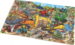 Dit grote prentenboek neemt jonge lezers mee naar de drukke wereld van de bouw, waar verschillende bouwmachines werken – van een rode graafmachine met dubbele banden en een groene wiellader tot een gele rupsgraafmachine. Kleurrijke en overzichtelijke scènes stimuleren nieuwsgierigheid en ontwikkelen fijne motoriek en logisch denken.
