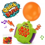 Tijdens het spel groeit de ballon totdat hij knalt en het spel eindigt. De console is uitgerust met geluidseffecten die dynamiek en energie toevoegen. Hij werkt op drie AAA-batterijen (niet inbegrepen) en bevat het Pop-It spel, een oplaadkabel en een set gekleurde ballonnen.