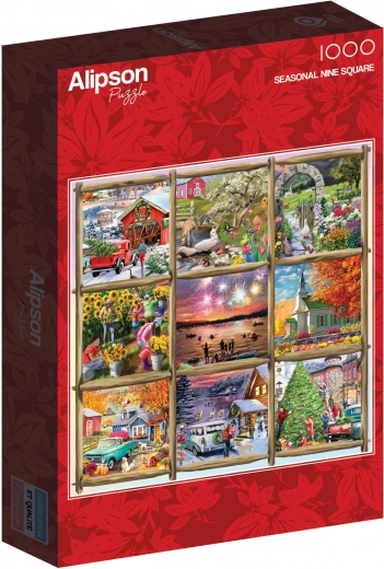 Ontdek de schoonheid van het hele jaar met deze unieke puzzel, die u lentebloemen, zomerse zon, herfstbladeren en winterse sneeuwvlokken biedt. Dankzij het vierkante ontwerp past deze puzzel gemakkelijk in elk interieur.