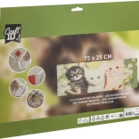 Werkwijze: Maak de bovenkant van het canvas voorzichtig stapsgewijs vrij zodat de kleeflaag schoon blijft en de steentjes goed hechten. Het canvas bevat symbolen die verwijzen naar de zakjes met de bijbehorende steentjes. Giet de steentjes in het schaaltje, neem ze op met de pen met was en breng ze aan op het canvas. Ga zo verder met alle kleuren. Opmerking: de lijst is niet inbegrepen.