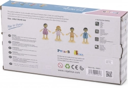Deze stijlvolle familie met twee generaties in zachte pastelkleuren is een geweldige aanvulling op alle poppenhuizen. Buigzame armen en benen laten de figuurtjes gemakkelijk zitten, staan of voorwerpen vasthouden, zodat kinderen hun eigen scènes uit het dagelijks leven kunnen maken. De hoogwaardige houten afwerking en zorgvuldige details garanderen een lange levensduur en veilig spelen.