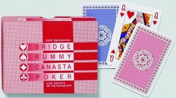 Universele set klassieke Franse kaarten, ideaal voor canasta, joker, bridge, poker en patience. In de verpakking vind je 2 × 55 kaarten met jokers, geschikt voor familieavonden en toernooispel.