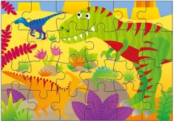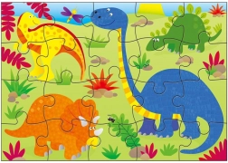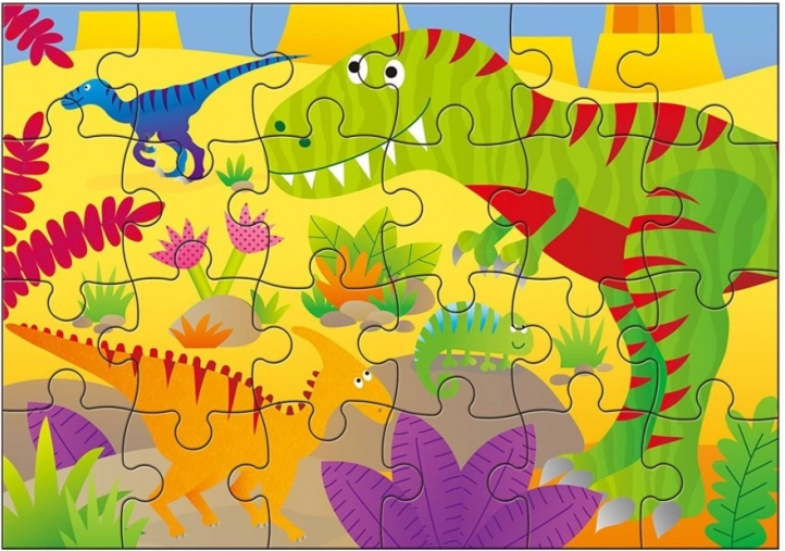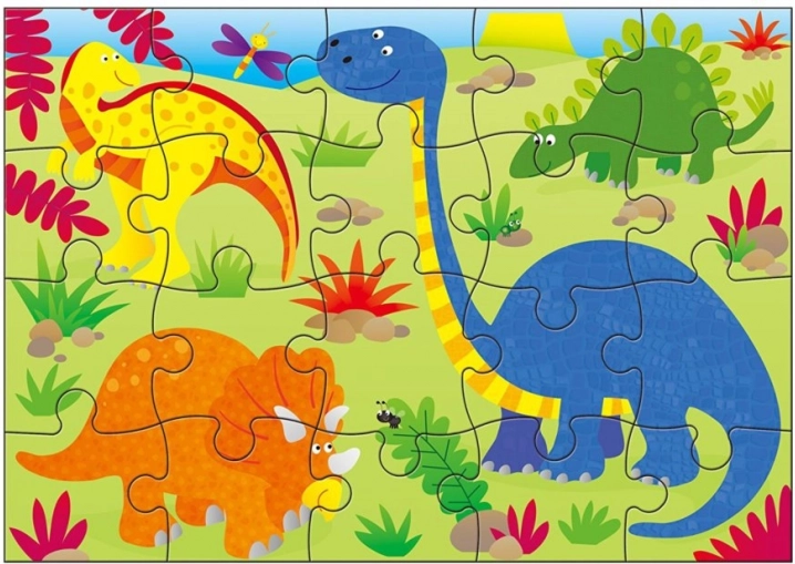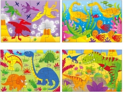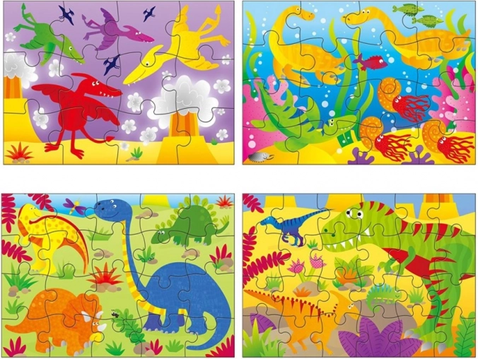 Ontdek leuke kinderpuzzels met dinothema in een praktische koffer – een set van vier afbeeldingen met oplopende moeilijkheid (12, 16, 20 en 24 stukjes). Ideaal voor kinderen vanaf 3 jaar, die tijdens het puzzelen hun logisch denken, fijne motoriek en geduld ontwikkelen. De compacte verpakking met een kunststof handgreep is perfect voor onderweg.