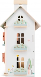 Het dak kan worden gedraaid en voor het huis gelegd, waardoor er een mooie tuin ontstaat voor buitenscènes. Het interieur omvat een woonkamer, keuken, badkamer en slaapkamer, zodat kinderen alledaagse situaties en eigen verhalen kunnen naspelen. De hoogwaardige afwerking van 100% FSC®-hout zorgt voor een lange levensduur en veilig spelen.