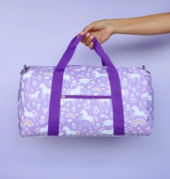 Kinder reistas ontworpen voor maximaal comfort en functionaliteit. Voorzien van twee handvatten en één afneembare schouderriem, wat zorgt voor comfortabel dragen. Ruim hoofdcompartiment aangevuld met een extra vak, twee zijvakken en een voorvak met ritssluiting, die voldoende ruimte bieden voor alles wat uw kind nodig heeft. De tas is ideaal voor zowel sportclubs als gezinsuitjes en kan ook worden gebruikt als handbagage in het vliegtuig. Het materiaal van de tas is licht, stevig, en heeft een vrolijk motief van eenhoorns en een regenboog.