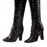 Stijlvolle laarsjes en gedetailleerde accessoires maken de look compleet en prikkelen de fantasie.