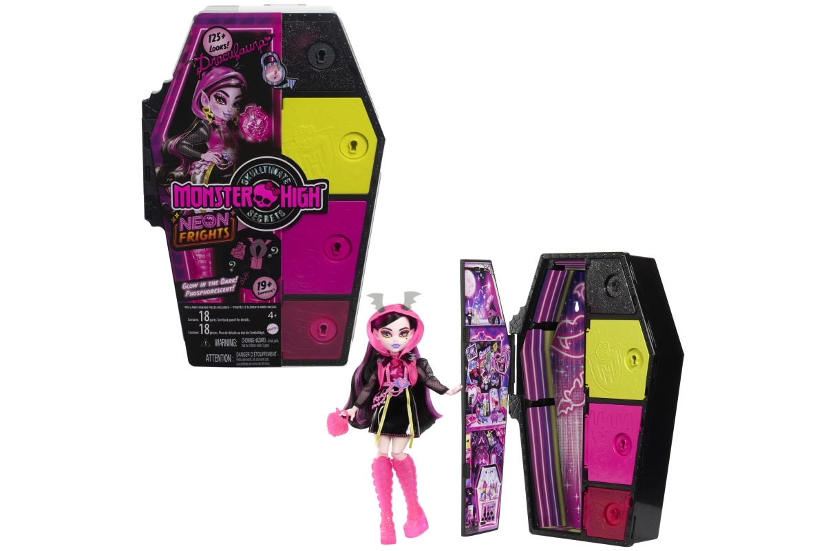 De Neon-editie brengt de geliefde Skulltimate Secrets terug in een nog opvallendere uitvoering. In de stijlvolle kast in kistvorm vind je een pop met een uitgebreide set, kleurveranderende effecten en accessoires die in het donker gloeien. Zo krijgt het spel een nieuwe dimensie van sfeer en fantasie.