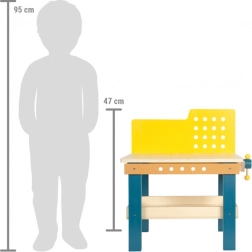 Ontdek de ideale kinderwerkplek voor kleine doe-het-zelvers. Deze stabiele houten werkbank SMALL FOOT Workshop biedt realistische elementen zoals een geïntegreerde bankschroef, een werkblad met gaten en een gele pegboard-plaat voor het bevestigen van onderdelen. Kinderen kunnen timmeren, zagen en schroeven terwijl ze hun handvaardigheid en technisch inzicht ontwikkelen.
