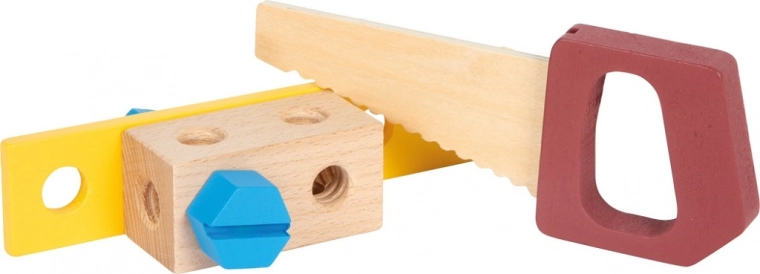 Opgelet, kleine klussers! Deze houten gereedschapskoffer biedt een robuste uitvoering, 5 houten gereedschappen en veel accessoires voor creatief bouwen. Dankzij de elastische banden blijft alles netjes op zijn plek, de metalen sluiting zorgt voor veilige opslag en het praktische handvat is ideaal voor kinderhandjes. Spel stimuleert de fijne motoriek, fantasie en concentratie.
