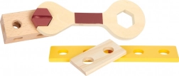 Een hamertje, sleutel, schroevendraaier, tang, zaag, waterpas, winkelhaak en vouwmeter ontwikkelen de handvaardigheid en leren een juiste omgang met gereedschap.