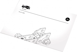 kist/werkbank, hamer, steeksleutel, schroevendraaier, 7× schroef, 5× moer, 2× grote geperforeerde plaat, 2× kleine, 1× middelgrote, 2× ruitvormige, 2× rechthoekige, 4× dikke ring, 4× dunne ring, 2× tandwiel