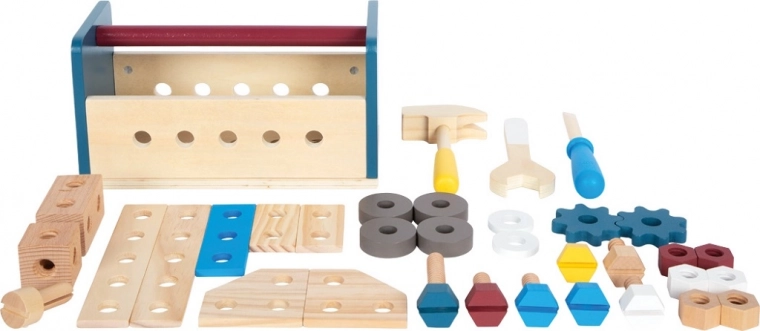 Ontdek het slimme speelgoed 2-in-1 – een houten gereedschapskist die je door omdraaien verandert in een werkbank. De robuuste houten constructie, het rijke assortiment accessoires en de compacte af... Meer tonen
