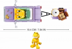 Bouw een paarse auto met “Garfield”-detail aan de zijkant en koppel de aanhanger met thematische accessoires – ideaal om mee te spelen of om tentoon te stellen.
