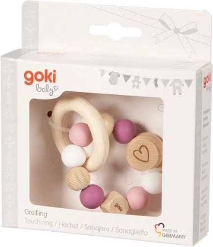 Ontdek de magie van de Goki tast- en motorische ring in hartvorm, ideaal om de ontwikkelingsprocessen bij de allerkleinsten te ondersteunen. Deze ring is gemaakt van hoogwaardig hout en siliconen; de elastische eigenschappen en afgeronde randen zorgen voor veiligheid tijdens het spelen. De belangrijkste voordelen zijn: