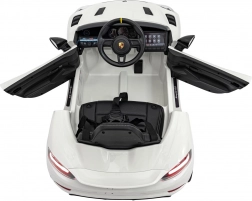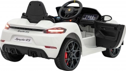 Stijlvolle elektrische kinderauto geïnspireerd op het model Porsche 718 Spyder RS met twee krachtige motoren 2×45 W, een 12 V 7 Ah accu, zachte EVA-banden en een kunstlederen stoel met veiligheidsgordels. Ouders waarderen de 2,4 GHz afstandsbediening met Stop-knop en drie snelheden. Voor extra plezier zijn er LED-lampen voor en achter, een audiopaneel met MP3/USB/AUX/Bluetooth en FM-radio en een soepele wegrijfunctie.